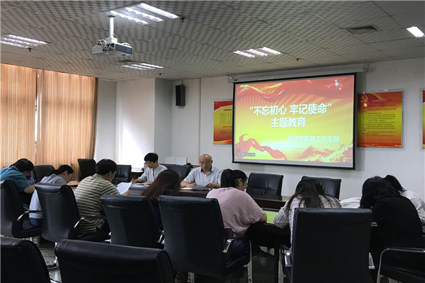 6月19日下午经济学院教工党支部在10楼会议室召开全体党员大会,开展“不忘初心、牢记使命”主题教育,集体学习和研讨习近平总书记的最新讲话精神。