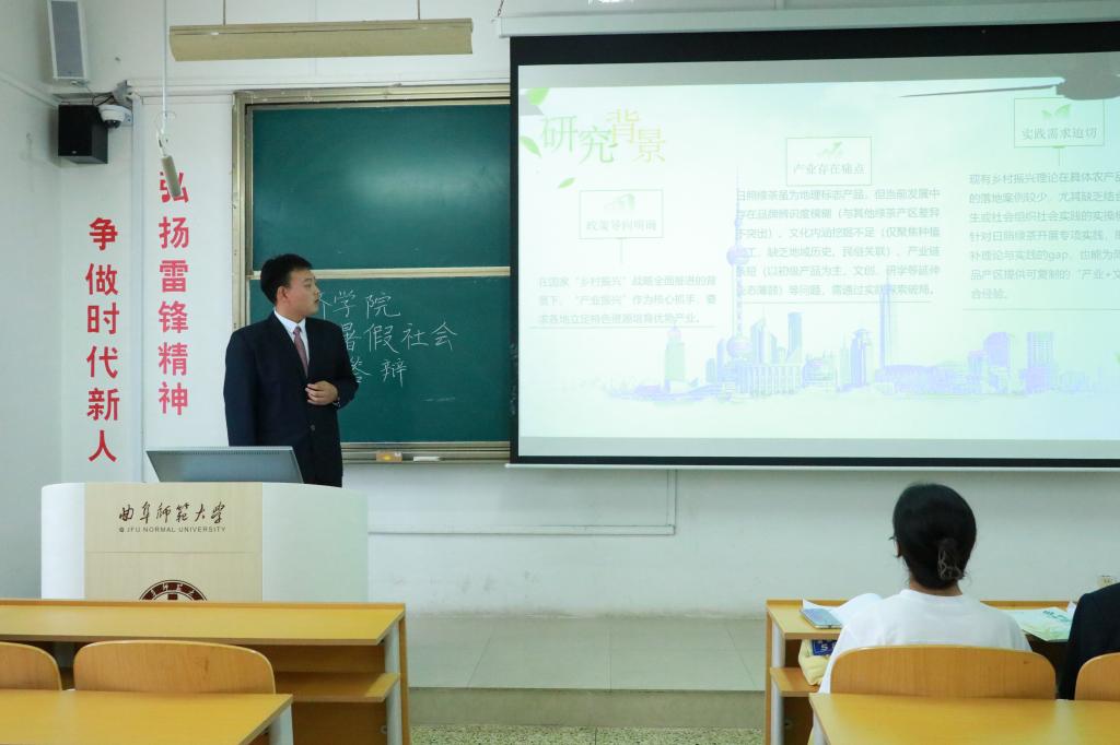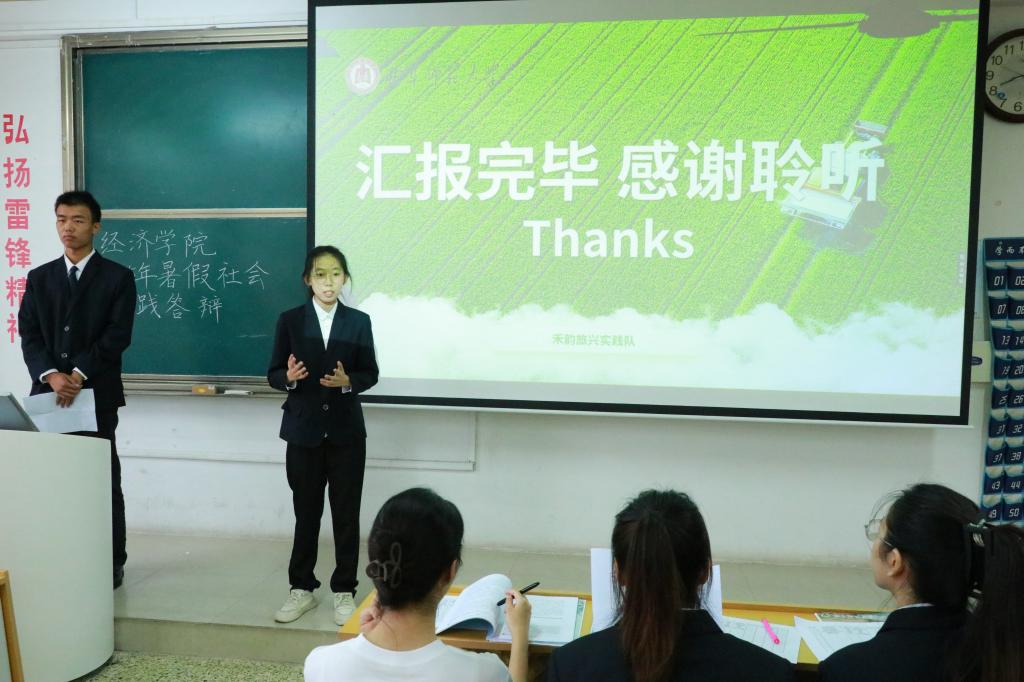 曲阜师大经济学院新闻中心讯(通讯员:张桐 路婧冉 摄影:张桐 路婧冉)为全面展示2025年暑期社会实践活动成果,促进各实践团队之间的经验分享与学习交流,9月27日上午,经济学院2025年暑期社会实践成果答辩会在JC501圆满举行。本次答辩会由学院团委副书记王家睿、赵超越,学生会主席崔瀚文,社会实践部部长徐子涵,青年服务部部长张润菡出席并担任评委。