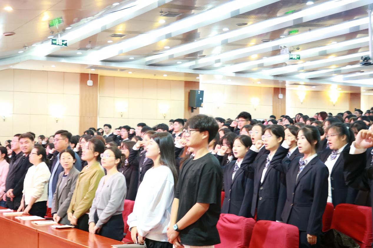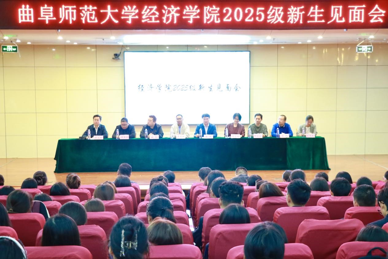 曲阜师大经济学院新闻中心讯(通讯员:岳丽君 杨惠雯 摄影:岳丽君 杨惠雯)10月14日下午,我院2025级新生见面会于图书馆报告厅顺利召开。学院党委书记赵杰,院长李传健,副院长李玉梅、姚鹏,院长助理李凯、高桂爱,各系主任及部分青年教师代表、辅导员出席会议,本次大会由党委副书记毕文波主持,2025级全体本科生参加。
