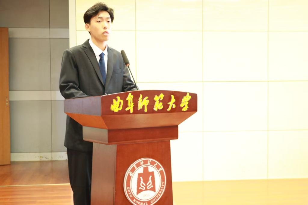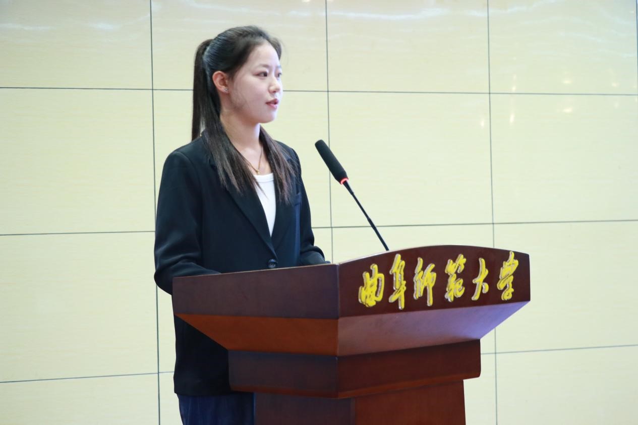 随后,青年教师代表李建宇结合自身求学经历和工作经验向新生分享了对于“如何将自己培养成经济学人才”这一问题的自我感想,他表示在日后的学习生活中大家可以侧重“寻找自己专项优势、培养经济学思维、将经济学知识内化于心外化于形”这三点的践行,希望新生日后可以为经济学院的发展贡献一份力量。