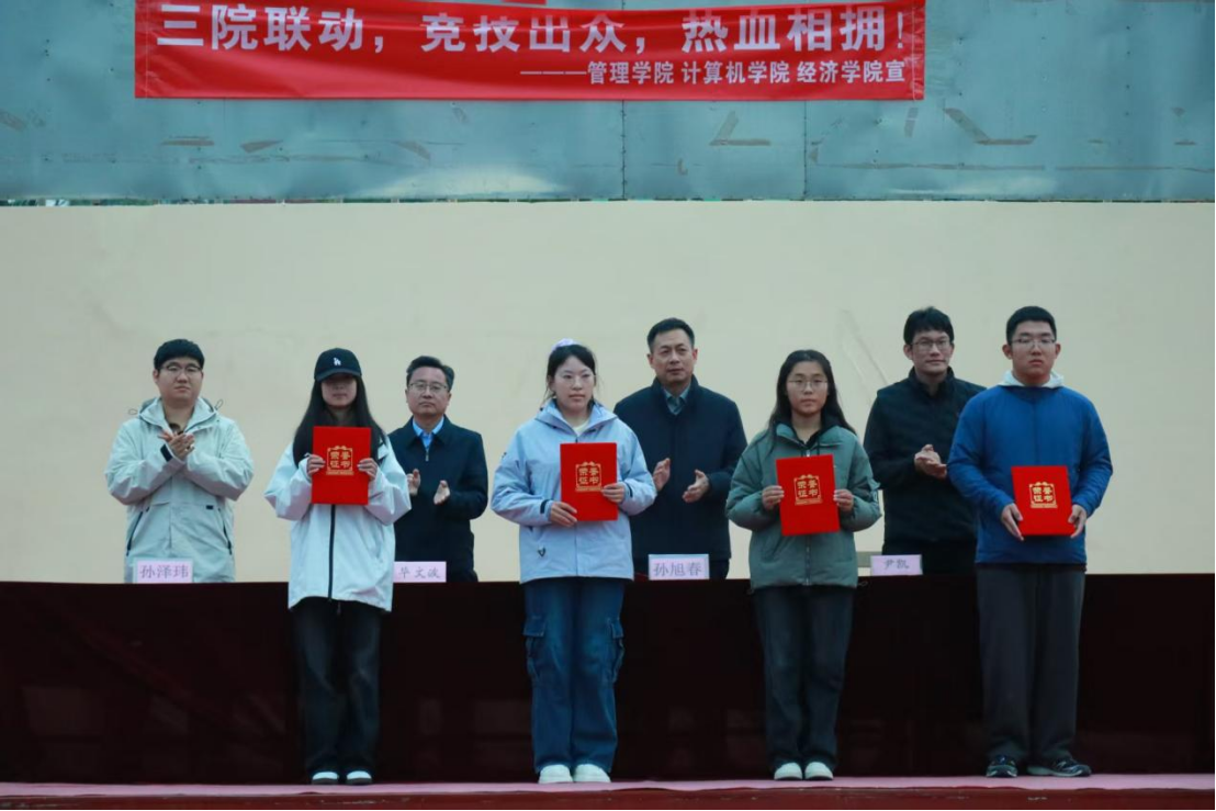 曲阜师大经济学院新闻中心讯(通讯员:张桐 路婧冉 摄影:张桐 路婧冉)为进一步增强院系交流、激发学生运动热情。10月 26日,曲阜师范大学经济学院、管理学院、计算机学院联合运动会于西操场隆重举行,经济学院党委副书记毕文波、计算机学院党委副书记孙旭春及辅导员孙泽玮,管理学院辅导员尹凯,出席开幕式,三院2025级全体新生参加。